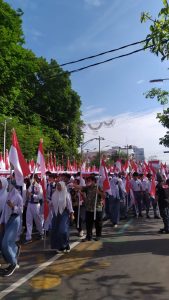 Penampilan yang beragam dan bernuansa kepahlawanan keras sangat kental. Bendera merah putih menjadi atribut wajib yang dikenakan mulai dari bendera, stiker tempel, seragam, dan masker. Hari pahlawan yang diperingati 10 November merupakan simbol betapa berharganya jasa pahlawan khususnya bagi Indonesia. Berbekal senjata tradisional yakni bambu runcing, para pahlawan mempertaruhkan jiwa dan raga untuk merebut kemerdekaan. “Saya senang mendampingi anak-anak dalam kirab ini, kita hanya diminta berjalan, sementara pahlawan harus gugur demi kemerdekaan.” Ujar Bu Dina selaku guru pendamping. (LR)